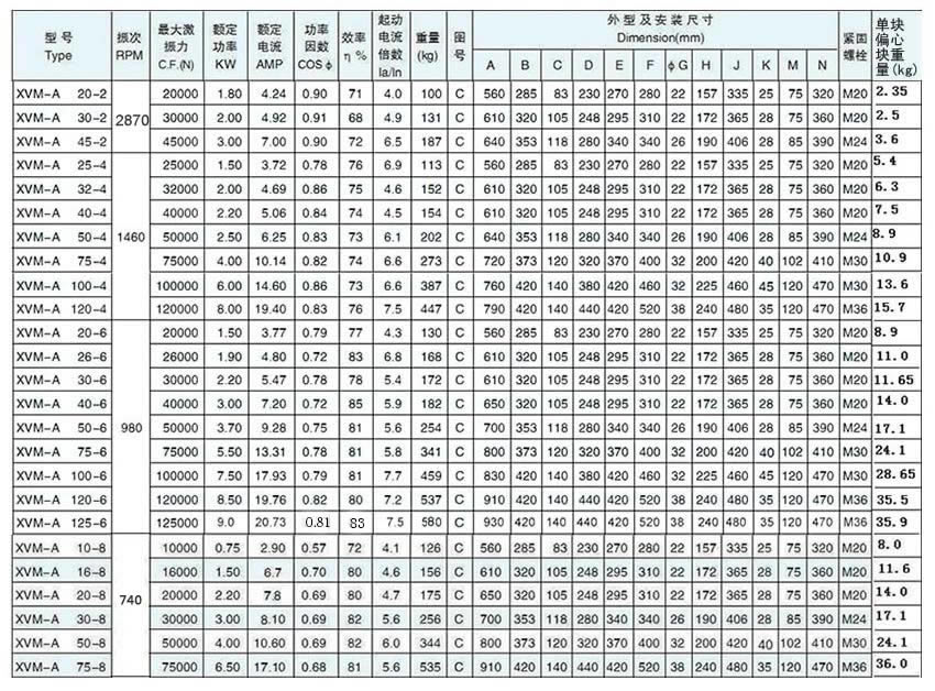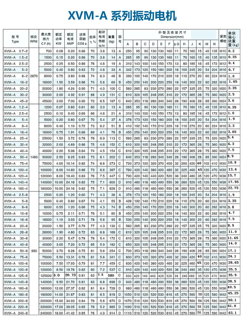 XVM-A系列振動電機采用了更加適應(yīng)振動電機工作特性的電磁設(shè)計,使得該系列產(chǎn)品運行溫升更低;特別配置的定、轉(zhuǎn)子及電磁參數(shù),使振動電機產(chǎn)生更大的的啟動力矩,電機運行更平穩(wěn);絕緣等級提高到F級,防護等級達到IP55,造就了XVM-A系列振動電機更加優(yōu)良的品質(zhì)。
